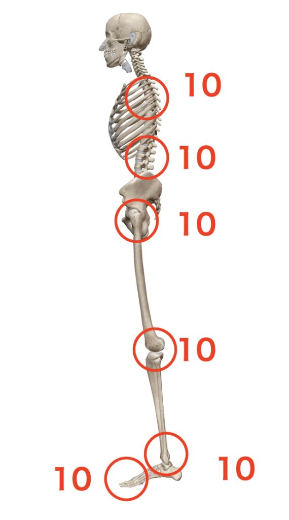 それぞれの関節が「10ずつ」ぐらいの負担を分け合っている状態。